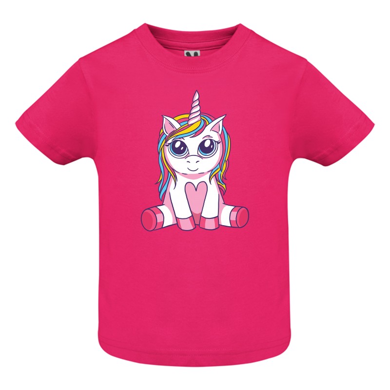 CAMISETA INFANTIL FUXIA UNICORNIO SENTADO